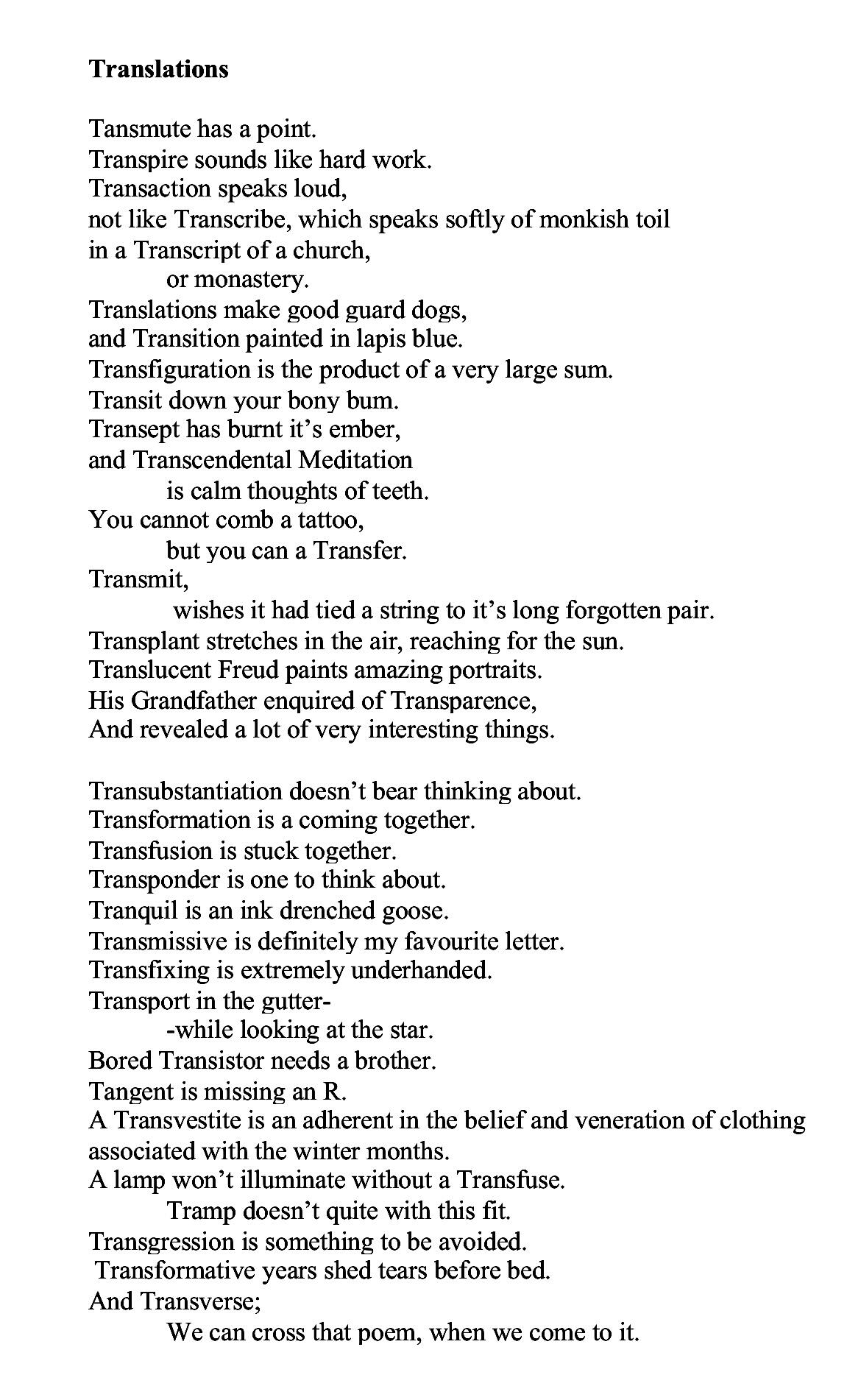 Brief BiographyAlan Murphy is the writer-illustrator of four "non-serious" collections of poetry for children and teenagers. He has also contributed serious poetry and visual art to numerous digital and print journals and anthologies in Ireland, the UK and the US, and exhibited throughout Ireland and abroad.